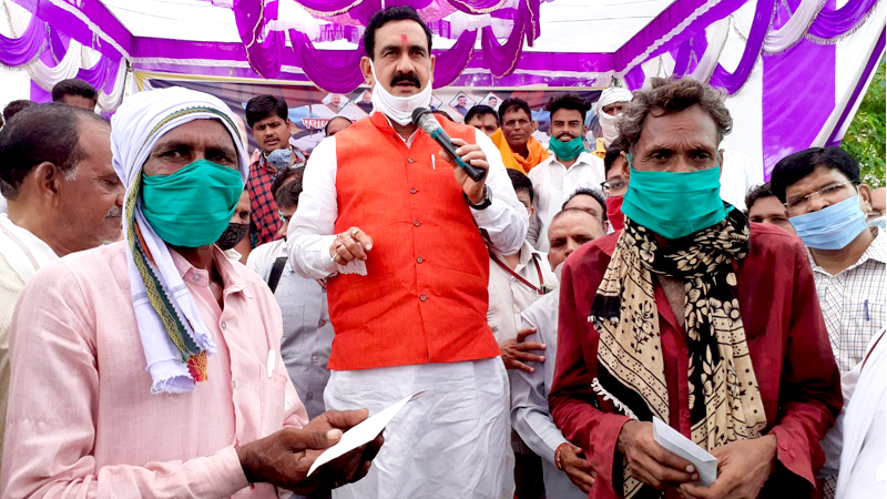 गृह मंत्री डॉ. नरोत्तम मिश्रा द्वारा मुख्यमंत्री ग्रामीण स्ट्रीट वेंडर योजना के प्रमाण-पत्र वितरित