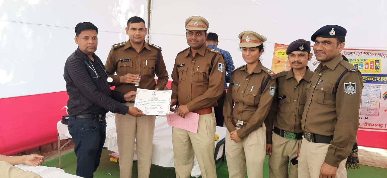 टीकमगढ़। पुलिस अधीक्षक अनुराग सुजनिया के निर्दशन में पुलिस लाइन में वृहद स्वास्थ्य परीक्षण एवं रक्त दान शिविर का आयोजन किया गया।